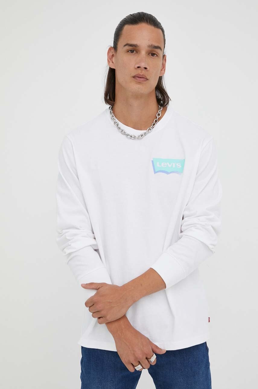 Levi’s longsleeve din bumbac culoarea alb, cu imprimeu