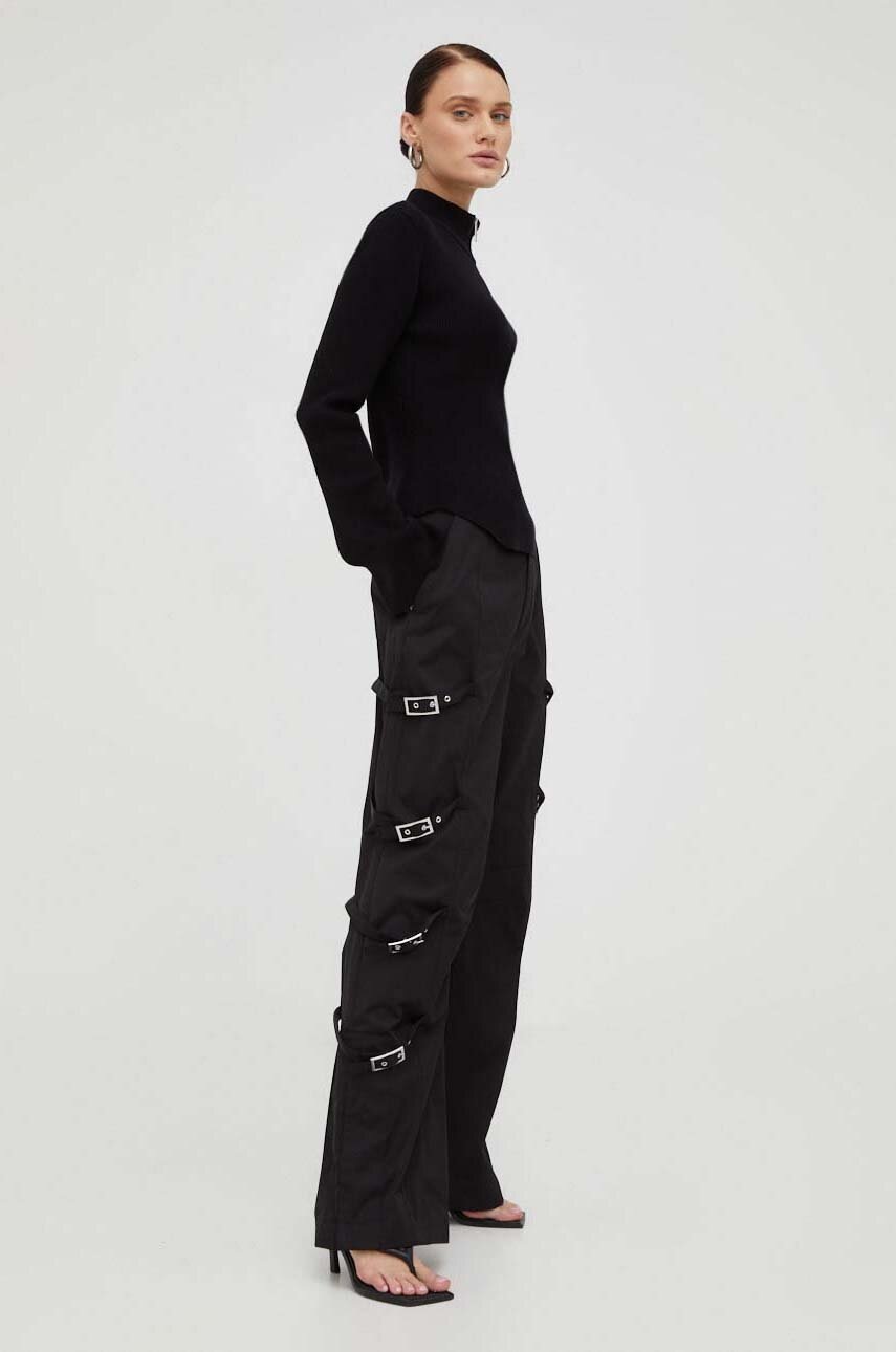 Gestuz pantaloni femei, culoarea negru, evazati, high waist
