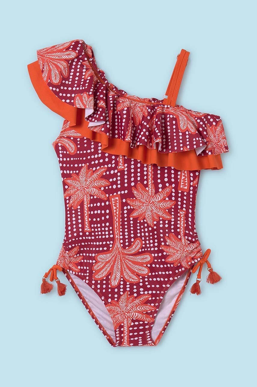 Costum de baie intreg copii din colectia Mayoral. Model confectionat din material ornamentat.