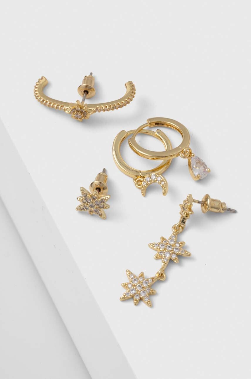 Cercei din colectia Aldo. Model ornament din zirconiu cubic confectionat din metal placat cu aur de 14k.