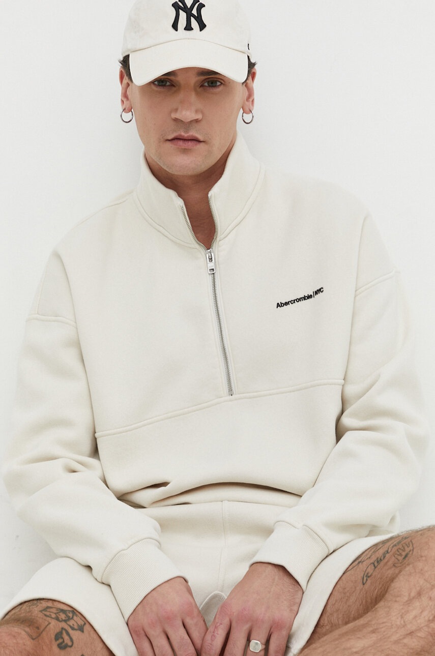 Abercrombie & Fitch bluza barbati, culoarea bej, neted