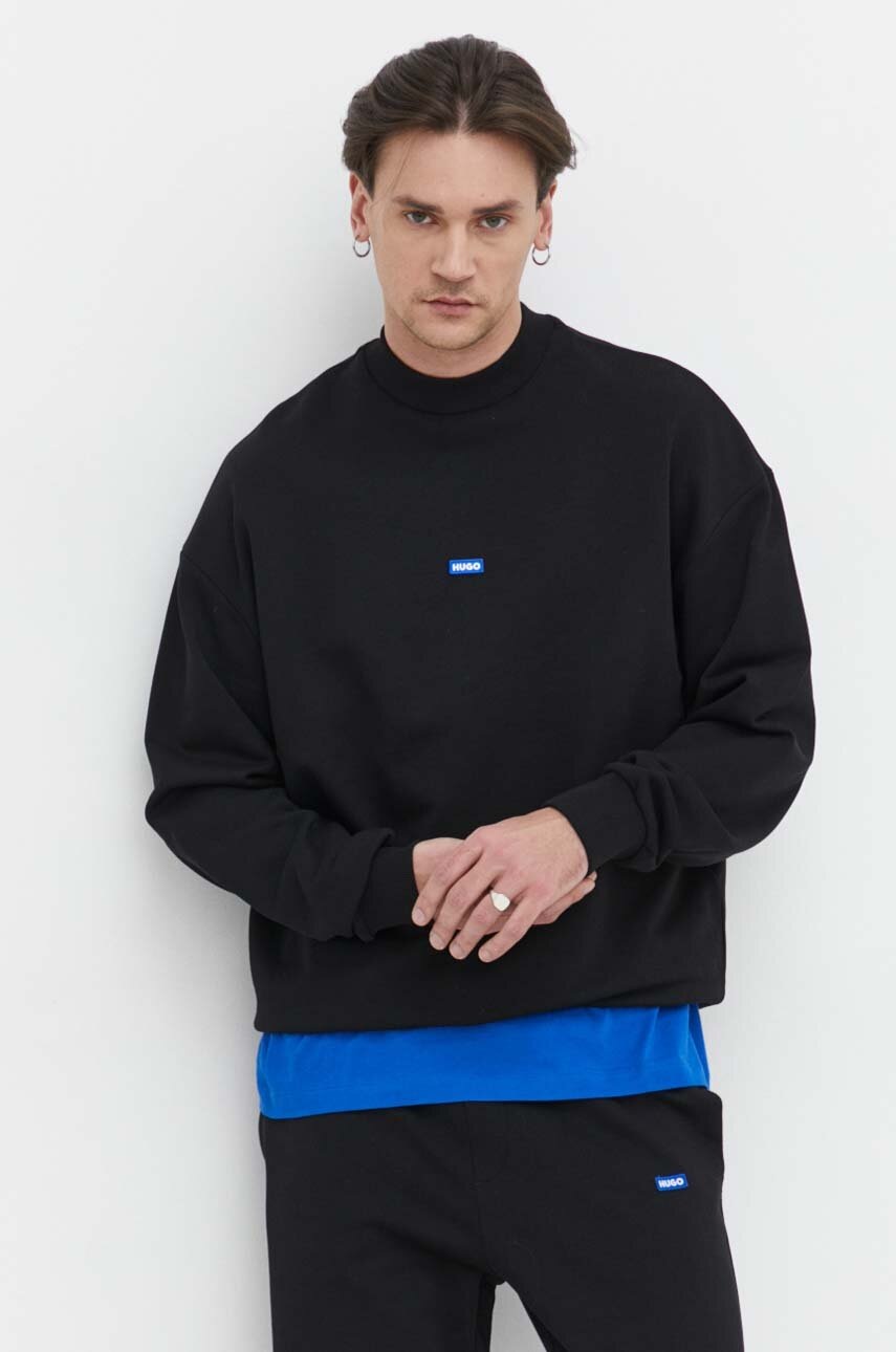 Hugo Blue hanorac de bumbac barbati, culoarea negru, neted