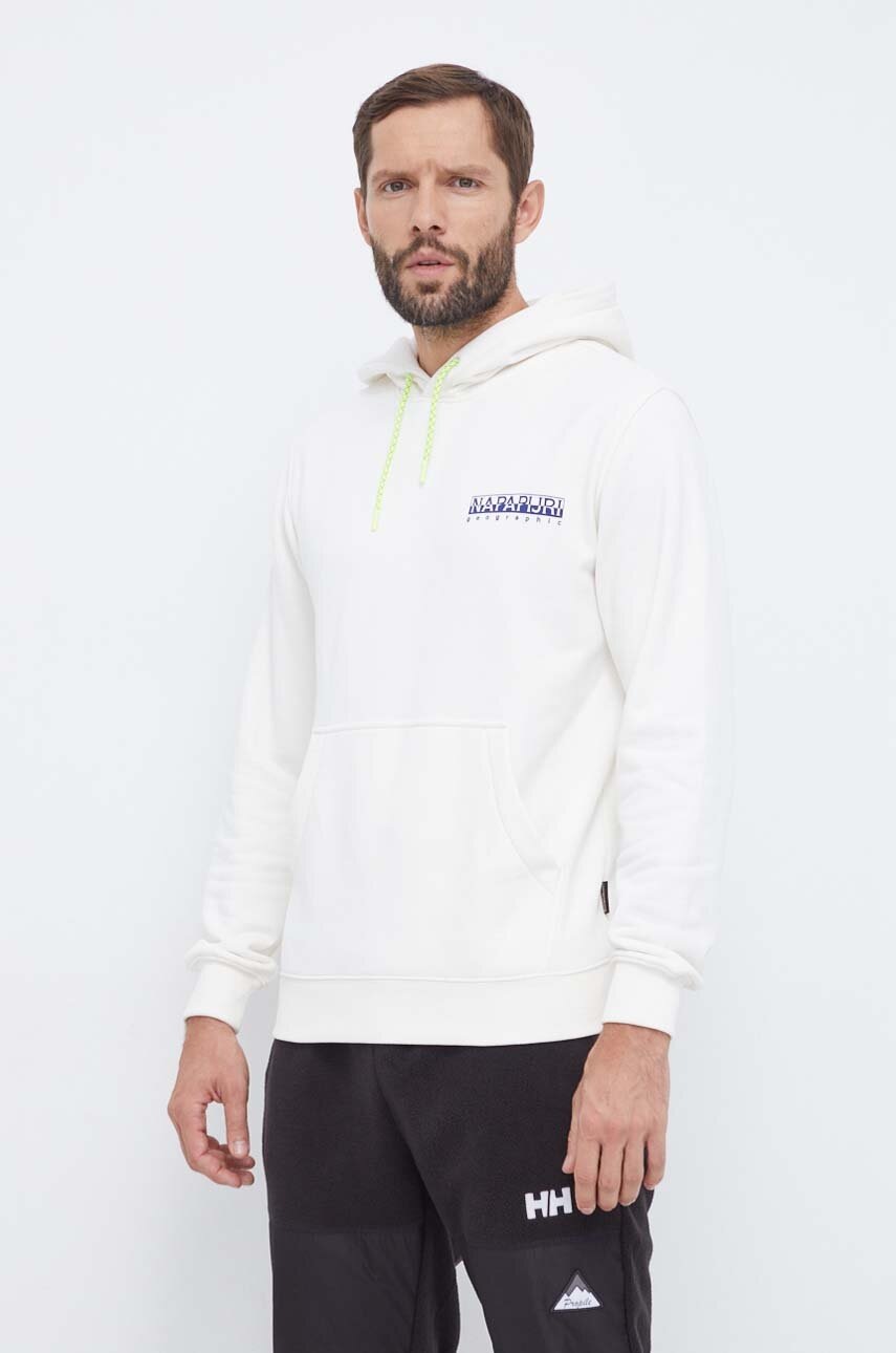 Napapijri bluza barbati, culoarea bej, cu glugă, cu imprimeu