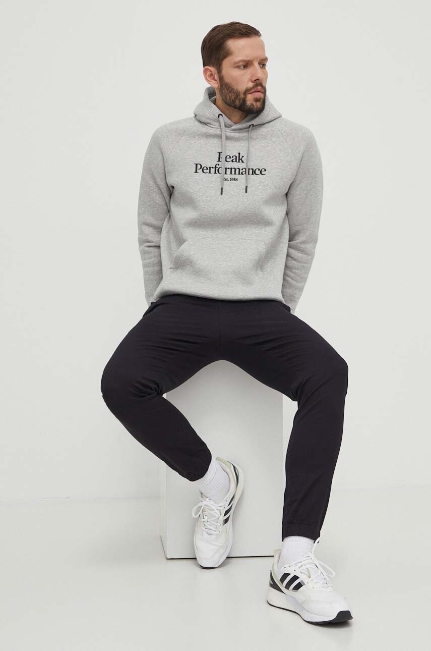 Peak Performance bluza barbati, culoarea gri, cu glugă, cu imprimeu