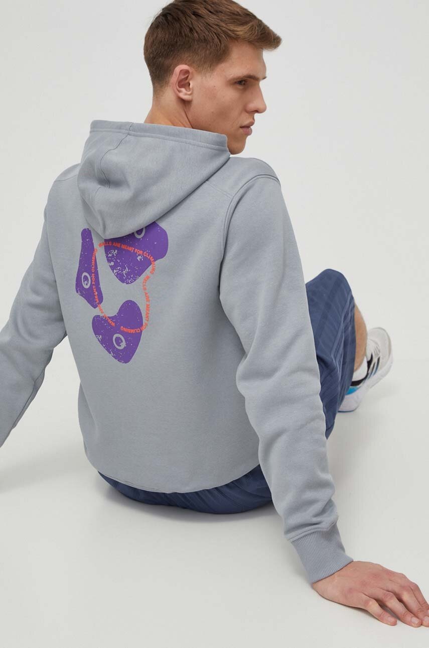 The North Face bluza barbati, culoarea gri, cu glugă, cu imprimeu, NF0A880TH5F1