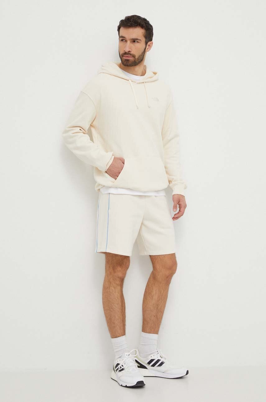 The North Face hanorac de bumbac barbati, culoarea bej, cu glugă, cu imprimeu, NF0A87D3QLI1