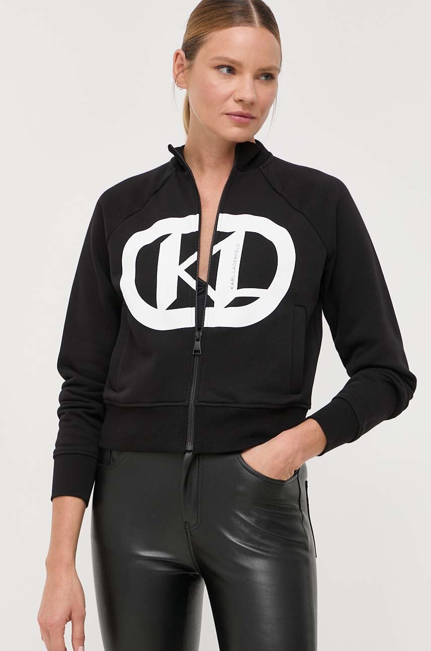 Karl Lagerfeld bluza femei, culoarea negru, cu imprimeu
