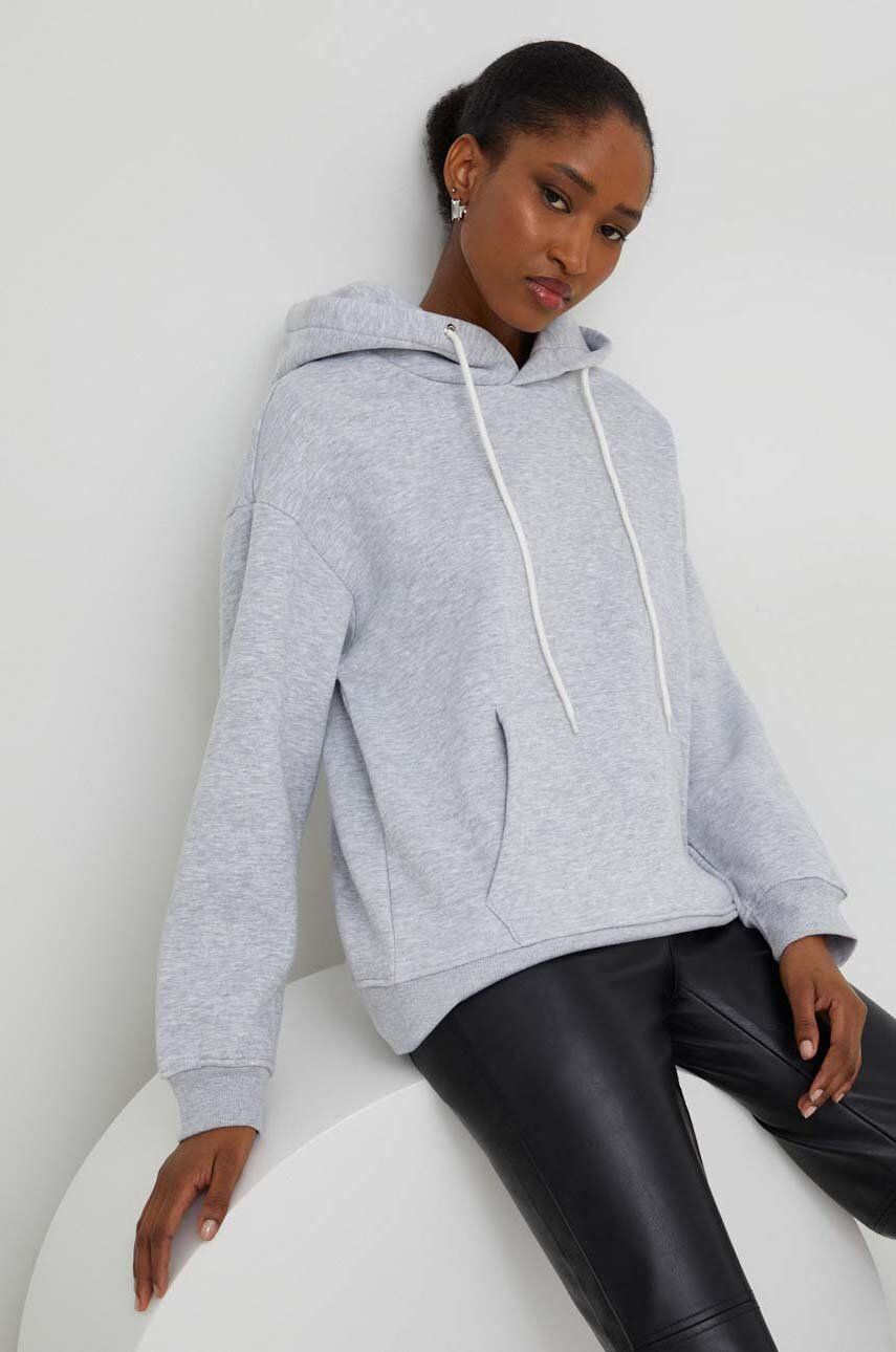 Answear Lab hanorac de bumbac femei, culoarea gri, cu glugă, neted
