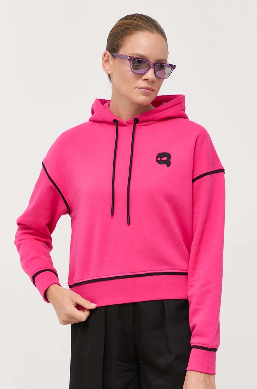 Karl Lagerfeld bluza femei, culoarea roz, cu glugă, cu imprimeu