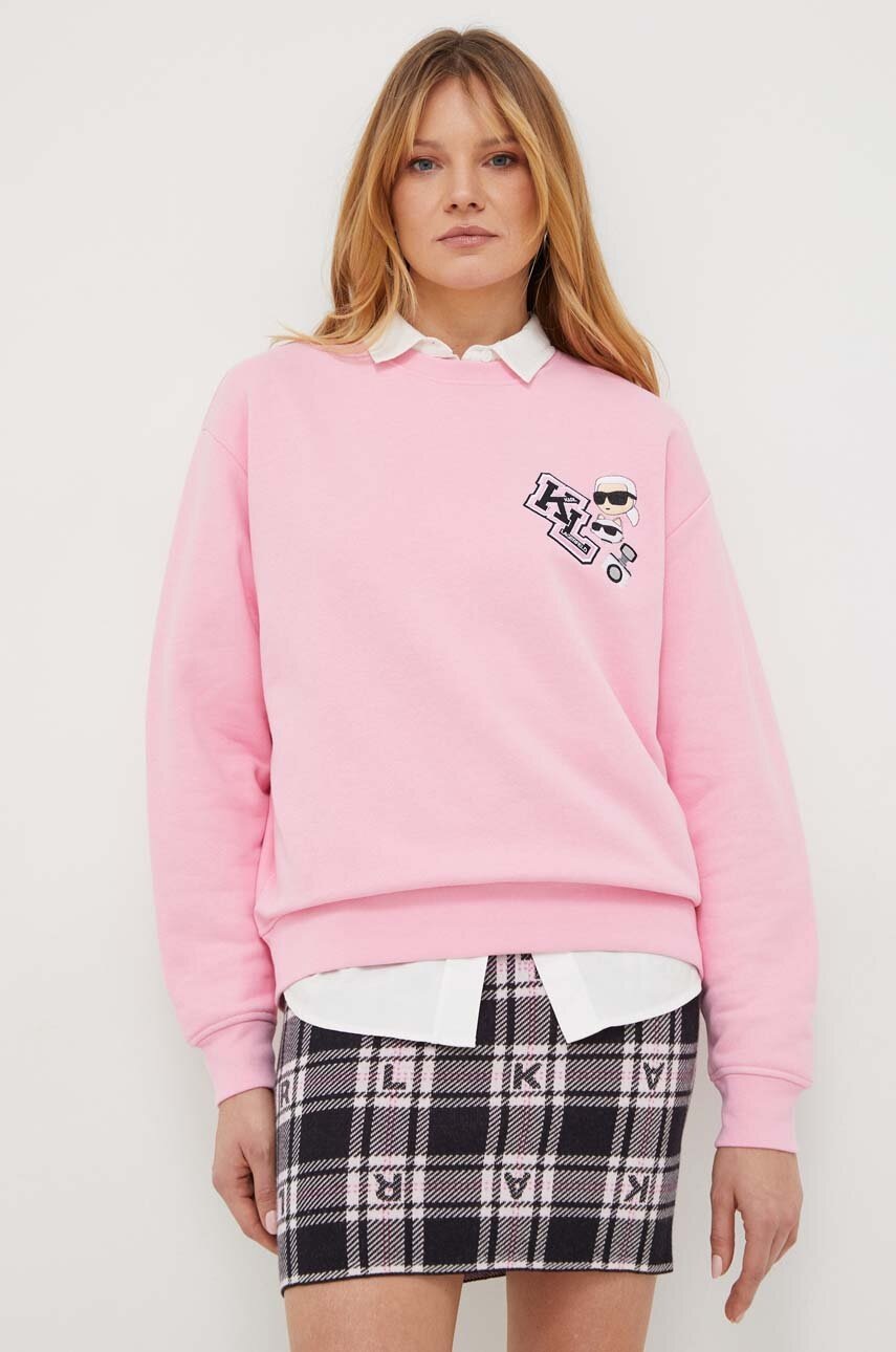 Karl Lagerfeld bluza femei, culoarea roz, cu imprimeu