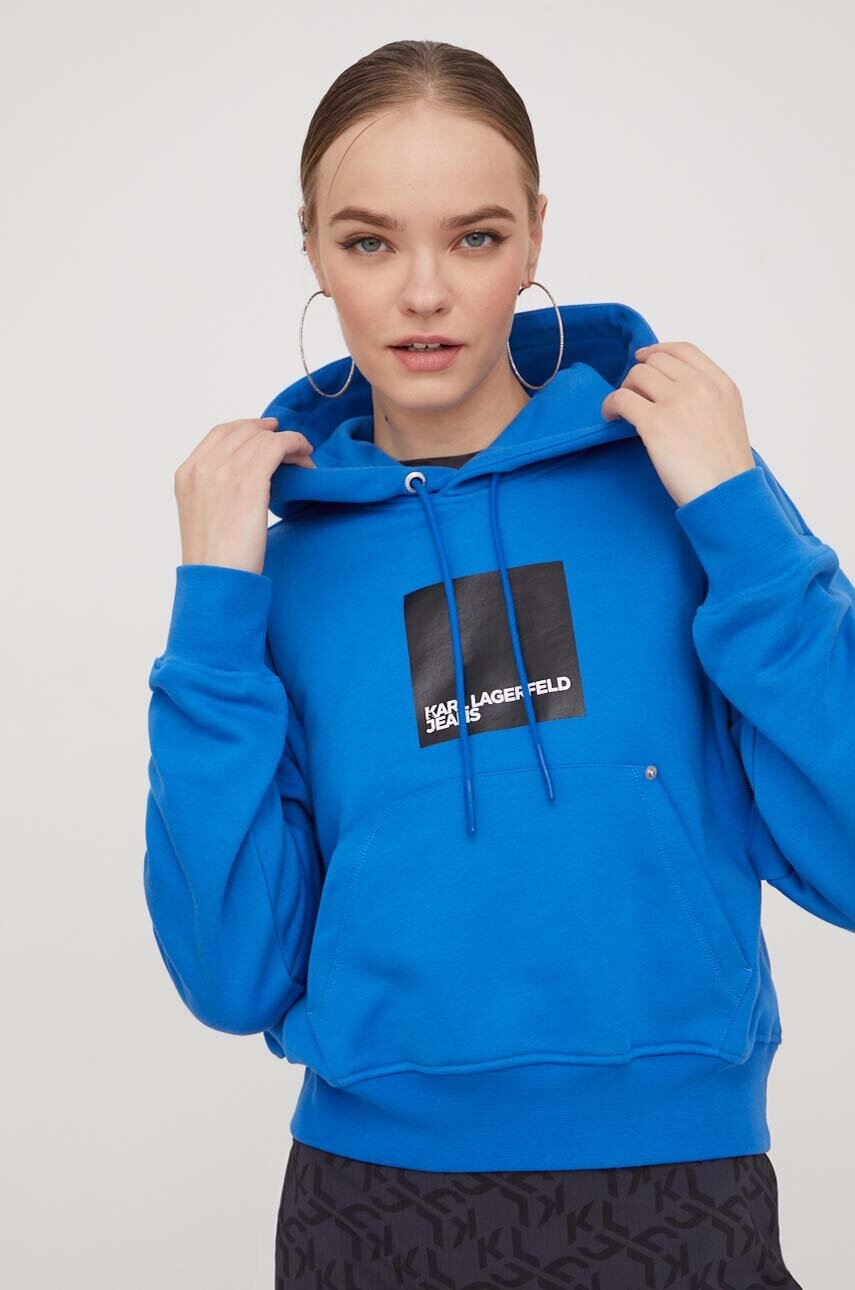 Karl Lagerfeld Jeans bluza femei, cu glugă, cu imprimeu