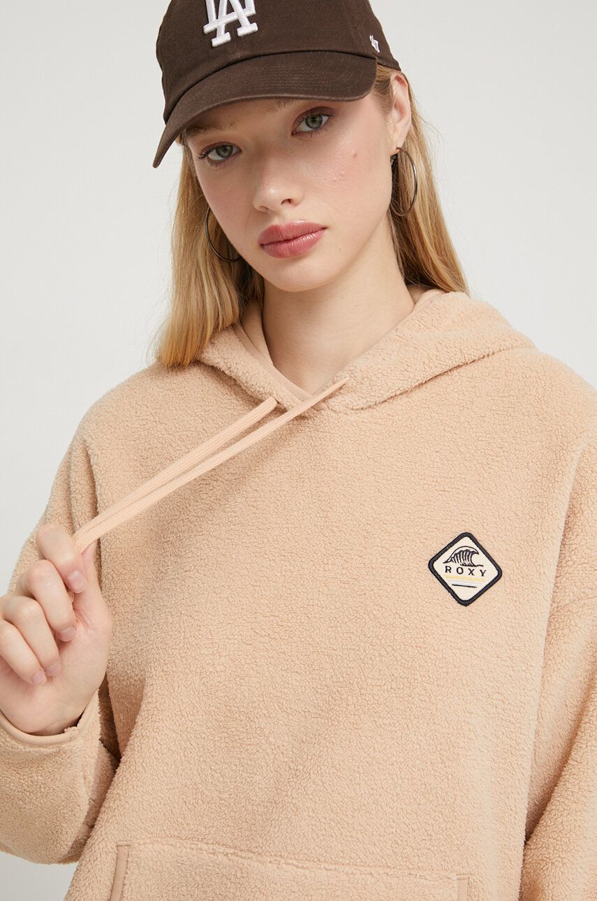 Roxy bluza femei, culoarea bej, cu glugă, cu imprimeu