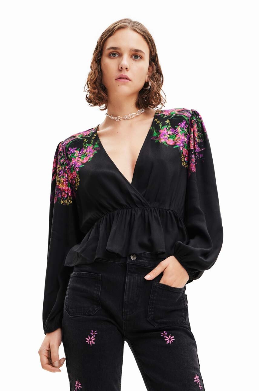 Bluza din colectia Desigual. Model confectionat din tesatura ornamentata. Are decolteu in V.