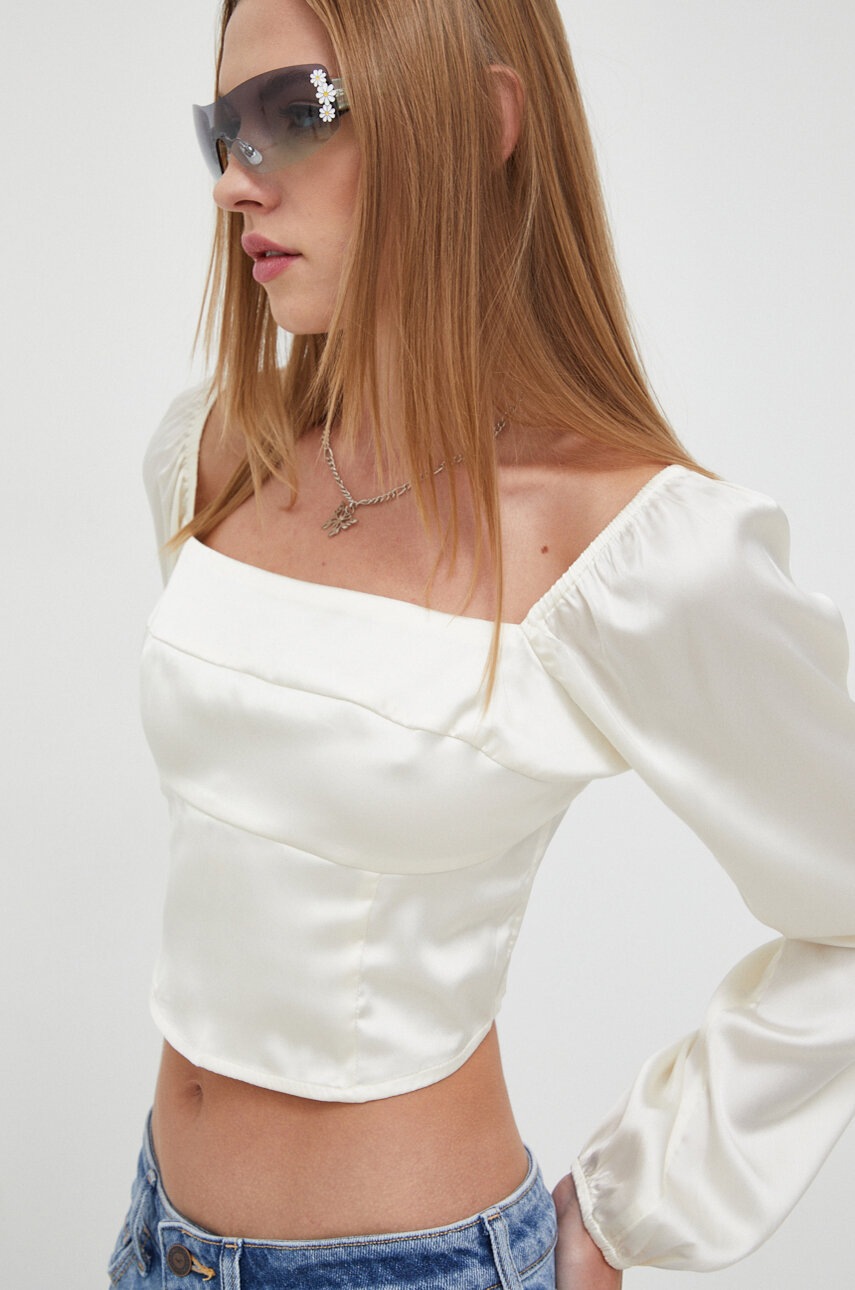 Bluză din colecția Hollister Co. Confecționat din tesatura neteda. Datorită conținutului de poliester, materialul este mai rezistent la cute.
