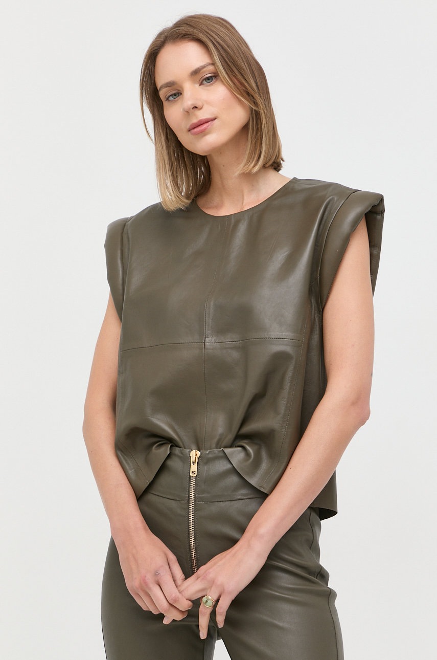 Bluza din colectia Notes du Nord. Model confectionat din piele naturală. Are decolteu rotund.