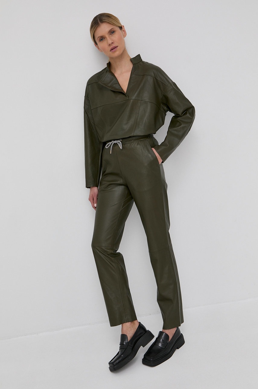 Notes du Nord bluză din piele femei, culoarea verde, neted