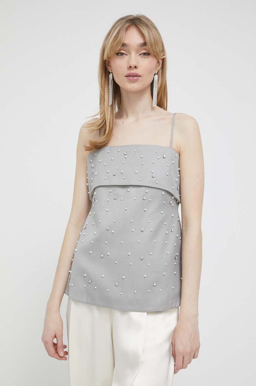 Stine Goya bluza din amestec de lana culoarea gri, cu imprimeu