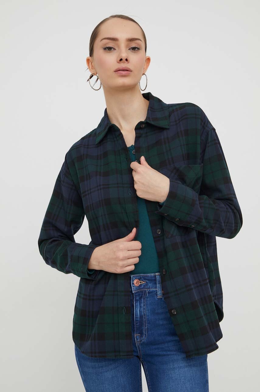 Abercrombie & Fitch camasa femei, culoarea albastru marin, cu guler clasic, relaxed