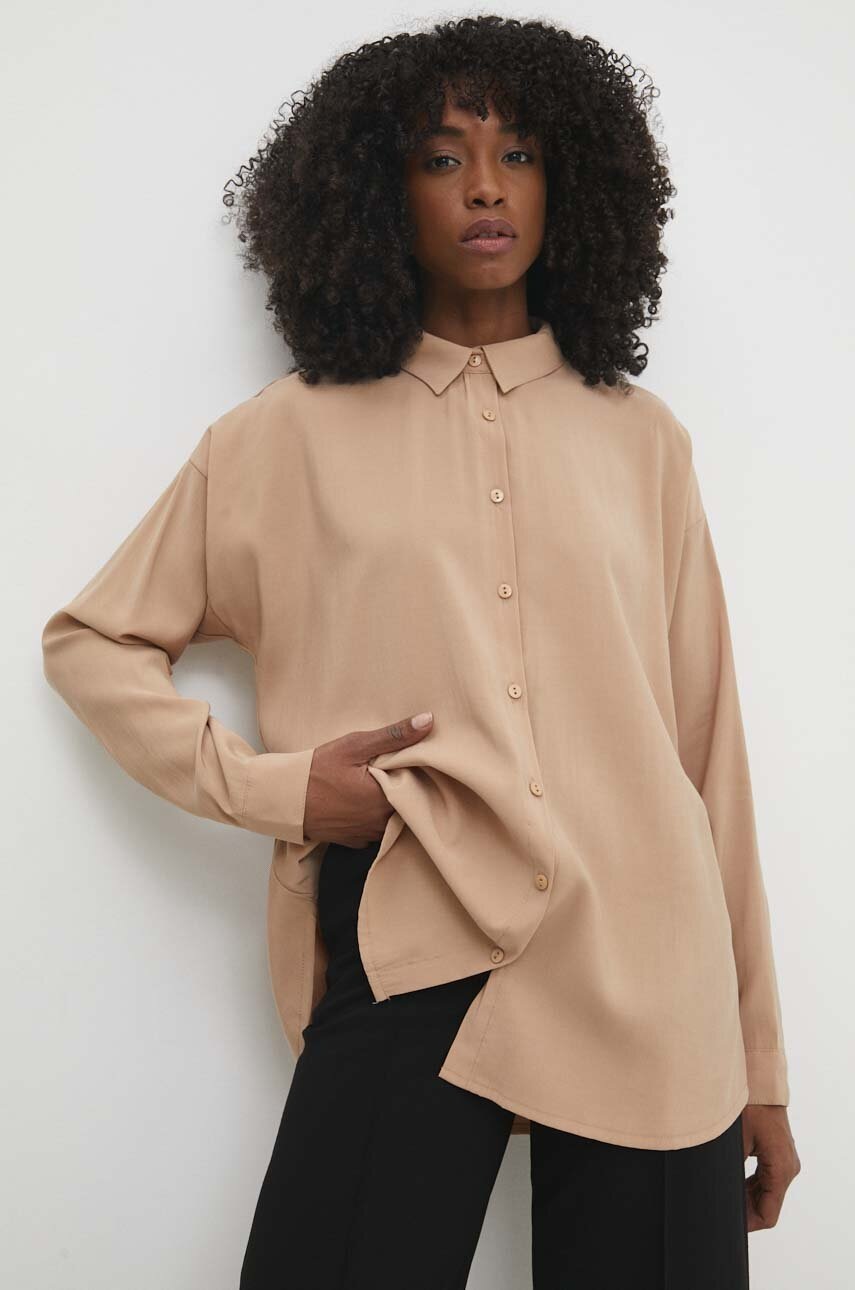 Answear Lab camasa femei, culoarea maro, cu guler clasic, relaxed