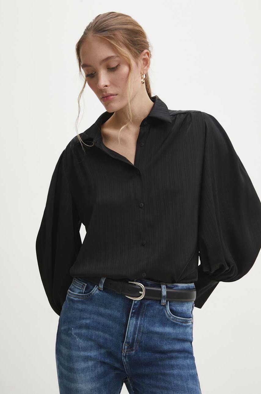 Answear Lab camasa femei, culoarea negru, cu guler clasic, regular