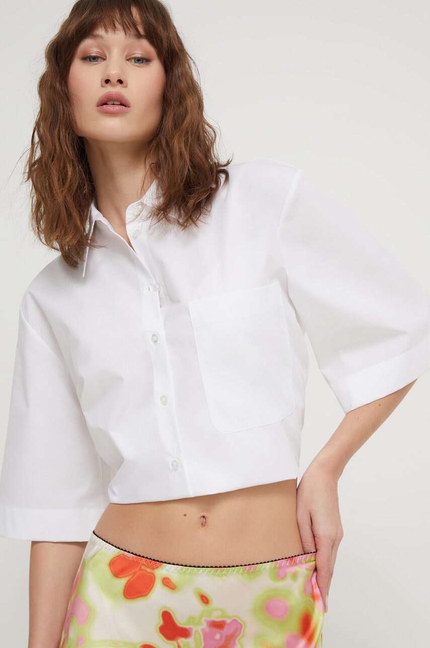 HUGO camasa din bumbac femei, culoarea alb, cu guler clasic, relaxed