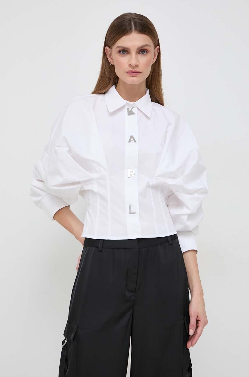 Karl Lagerfeld camasa din bumbac femei, culoarea alb, cu guler clasic, relaxed