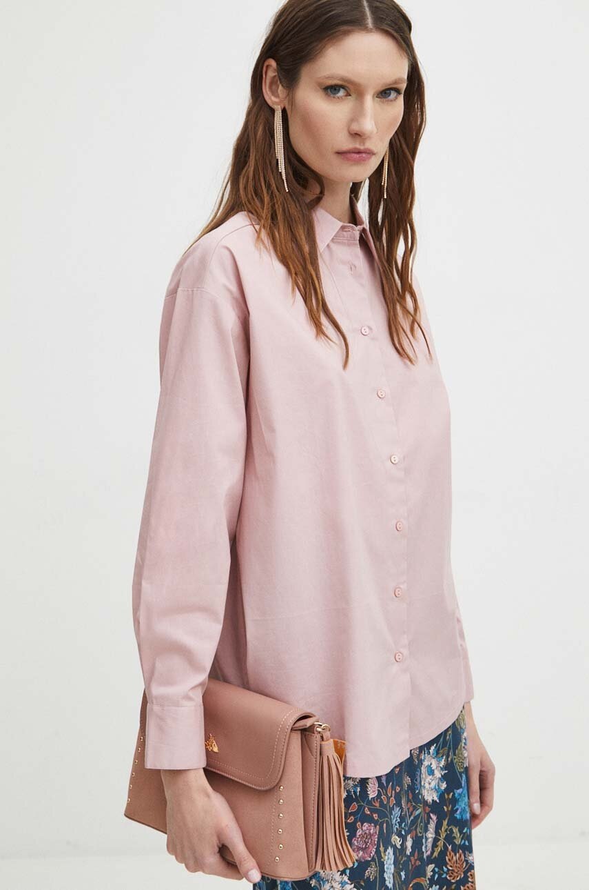 Medicine camasa femei, culoarea roz, cu guler clasic, relaxed