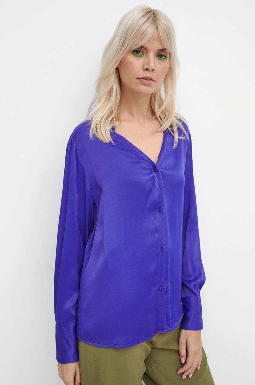 Medicine camasa femei, culoarea violet, cu guler clasic, regular