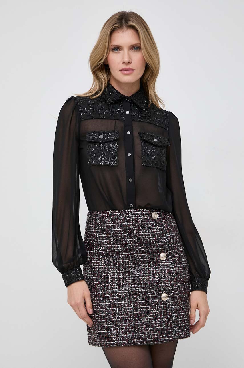 Morgan camasa femei, culoarea negru, cu guler clasic, regular