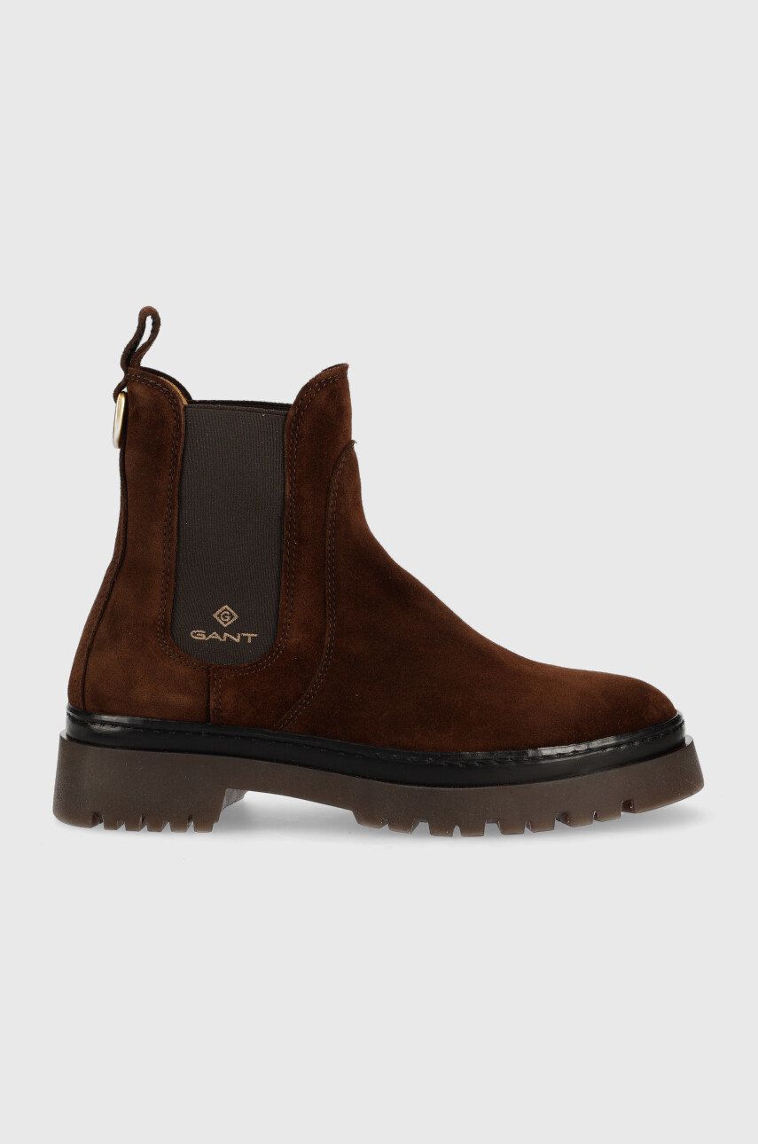 Gant botine din piele intoarsa Aligrey femei, culoarea maro, cu toc plat