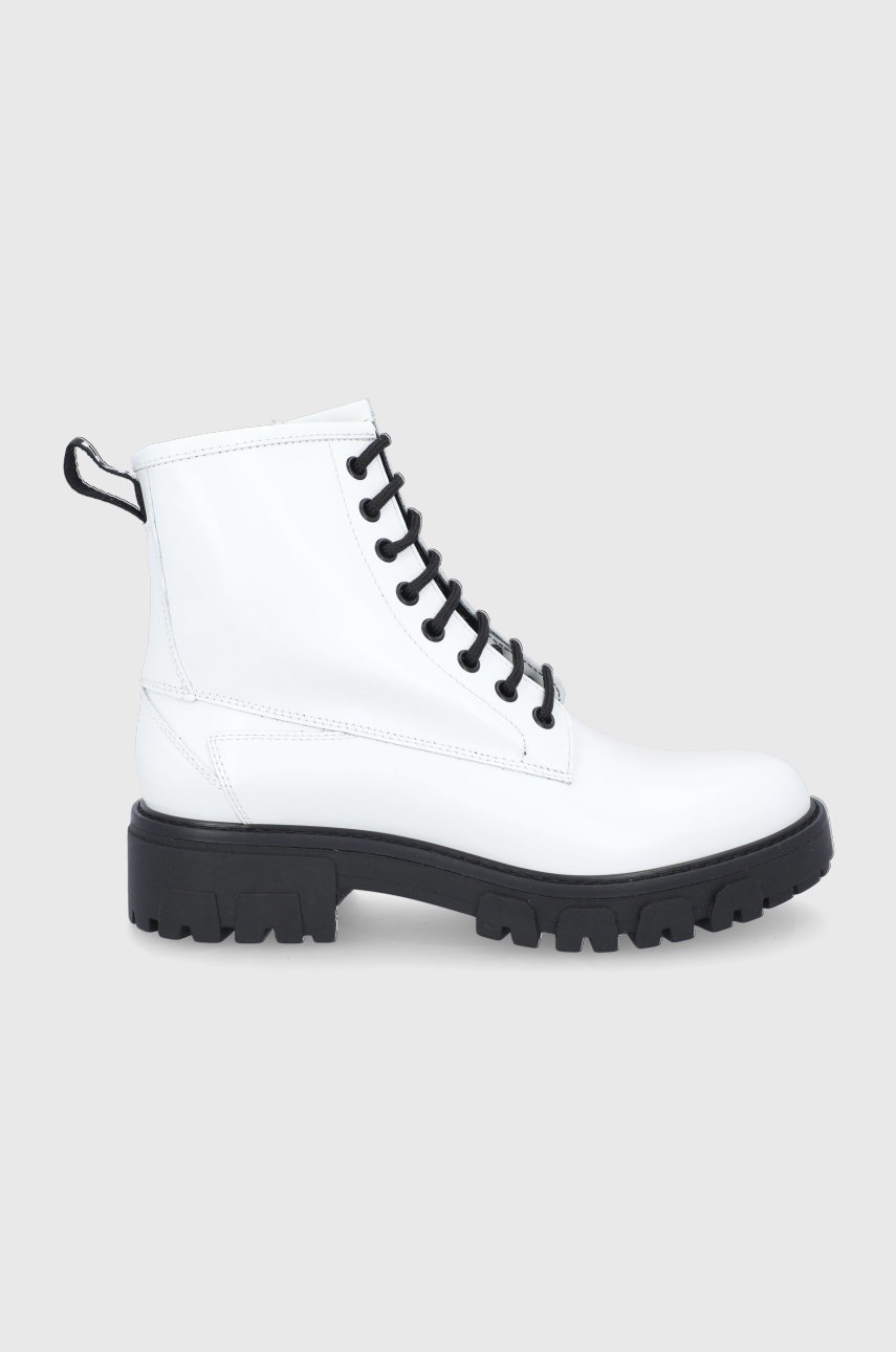 Hugo Bocanci de piele femei, culoarea alb, cu toc plat