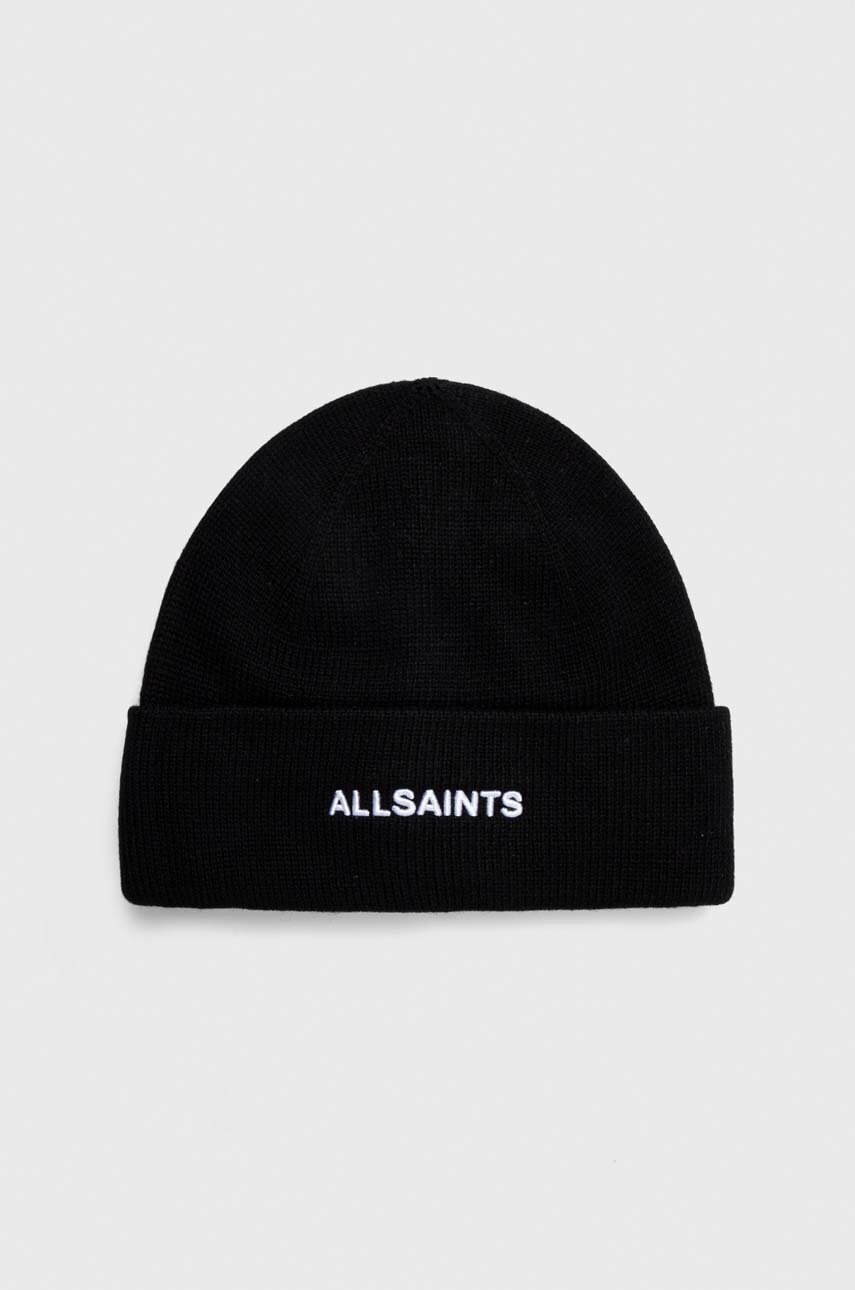 AllSaints caciula din amestec de lana culoarea negru, din tricot gros