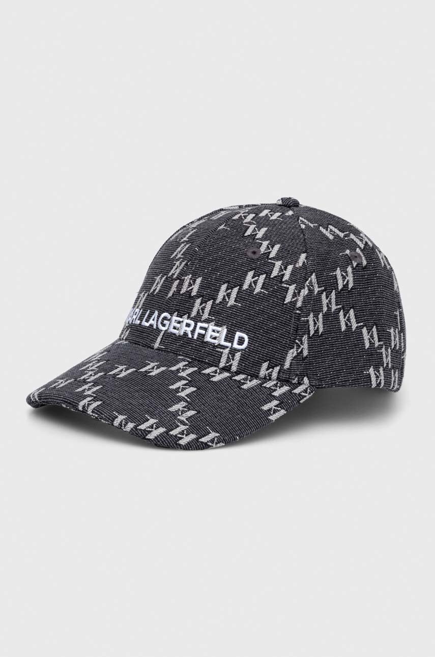 Sapca din colectia Karl Lagerfeld. Model confectionat din tesatura ornamentata.