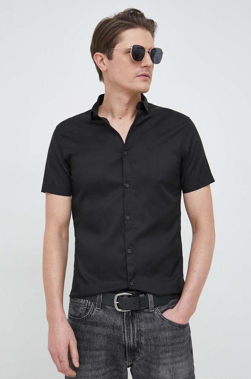 Armani Exchange camasa barbati, culoarea negru, cu guler clasic, regular