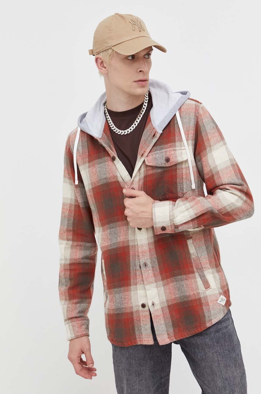 Quiksilver camasa din bumbac barbati, culoarea portocaliu, regular