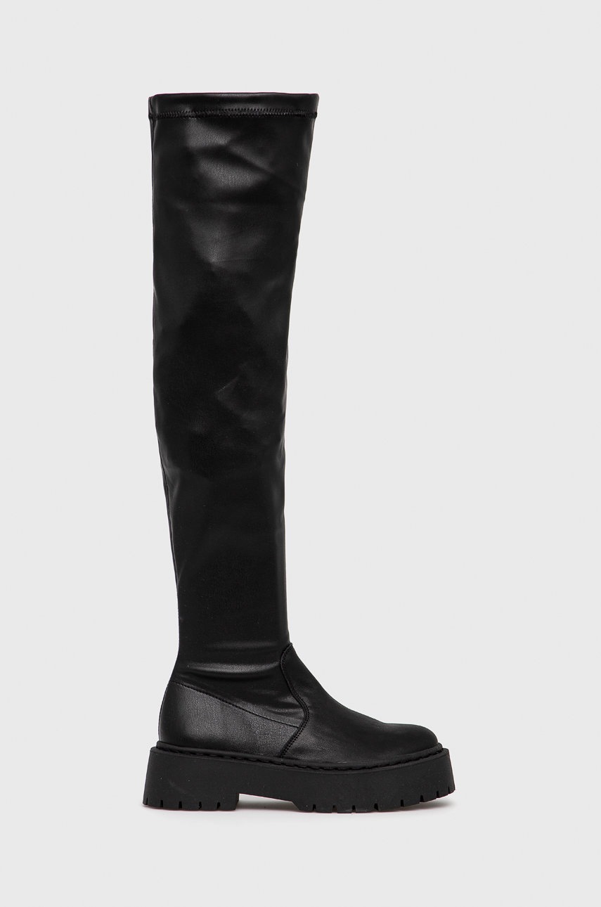 Steve Madden Ghete de piele femei, culoarea negru, cu toc plat
