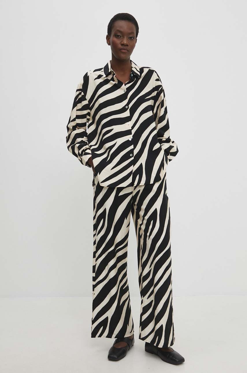 -22%Set cămașă și pantaloni din colecția Answear Lab confecționat din combinatia tricoturilor cu ornamente diferite. Datorită conținutului de poliester, materialul este mai rezistent la cute.
