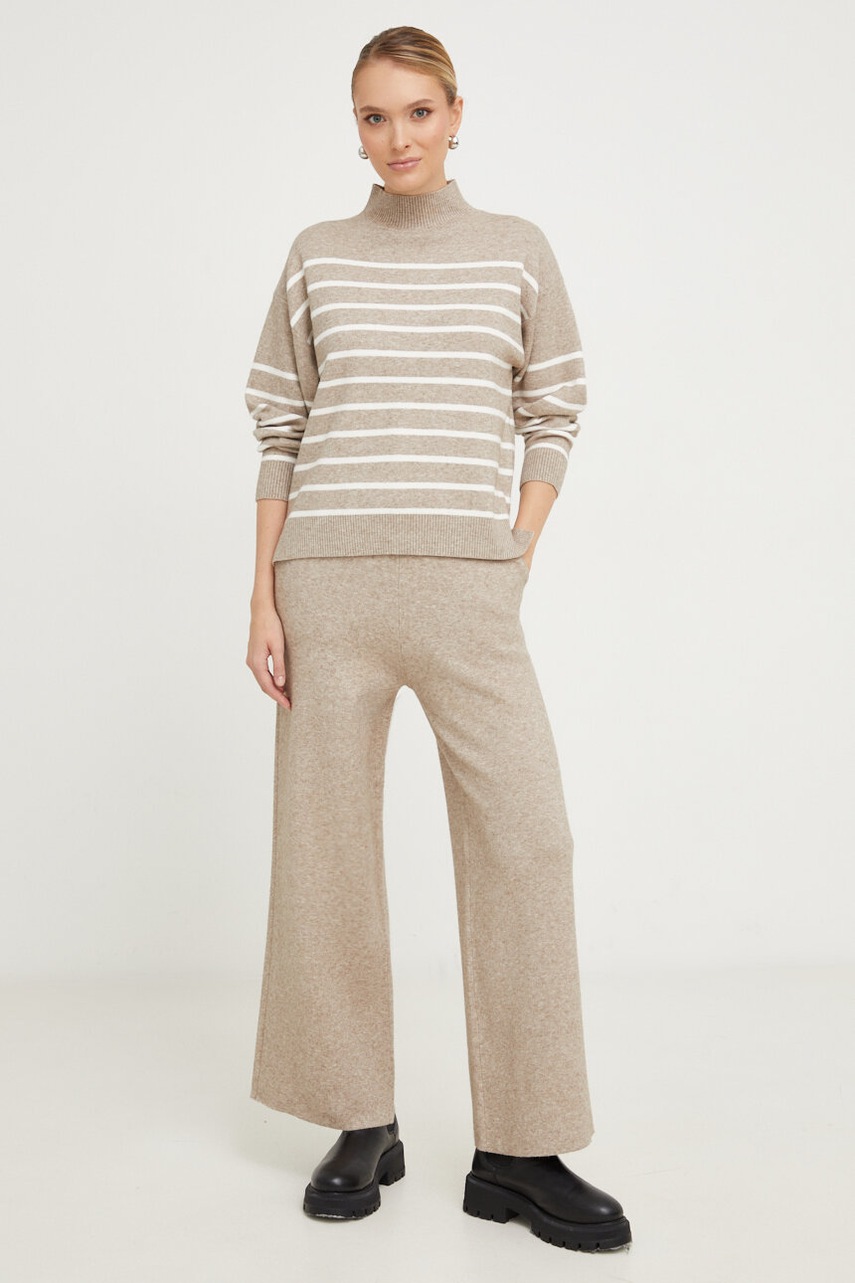 Answear Lab set pulover și pantaloni din lână culoarea bej