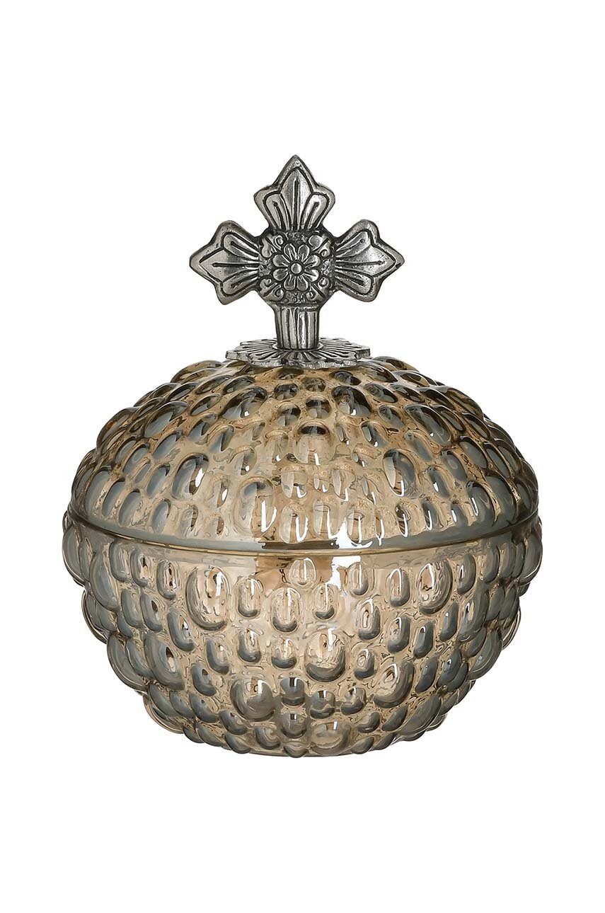 – Design simplu si elegant. – Capac cu detaliu decorativ. – Dimensiunile: 17 x 20 cm.