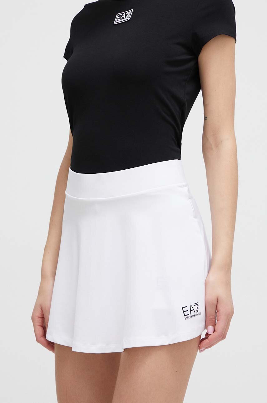 EA7 Emporio Armani fusta culoarea alb, mini, evazati