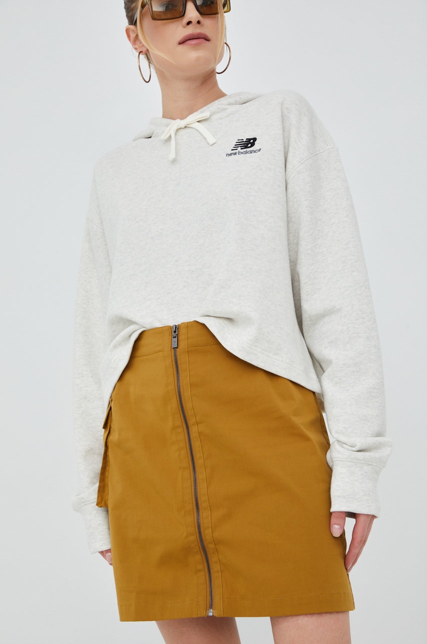 – In fata buzunar. – Incheiere cu fermoar. – Stofa subtire, inflexibila. – Latimea in talie: 37 cm. – Lungimea: 45 cm. – Dimensiunile date pentru marimea: S.