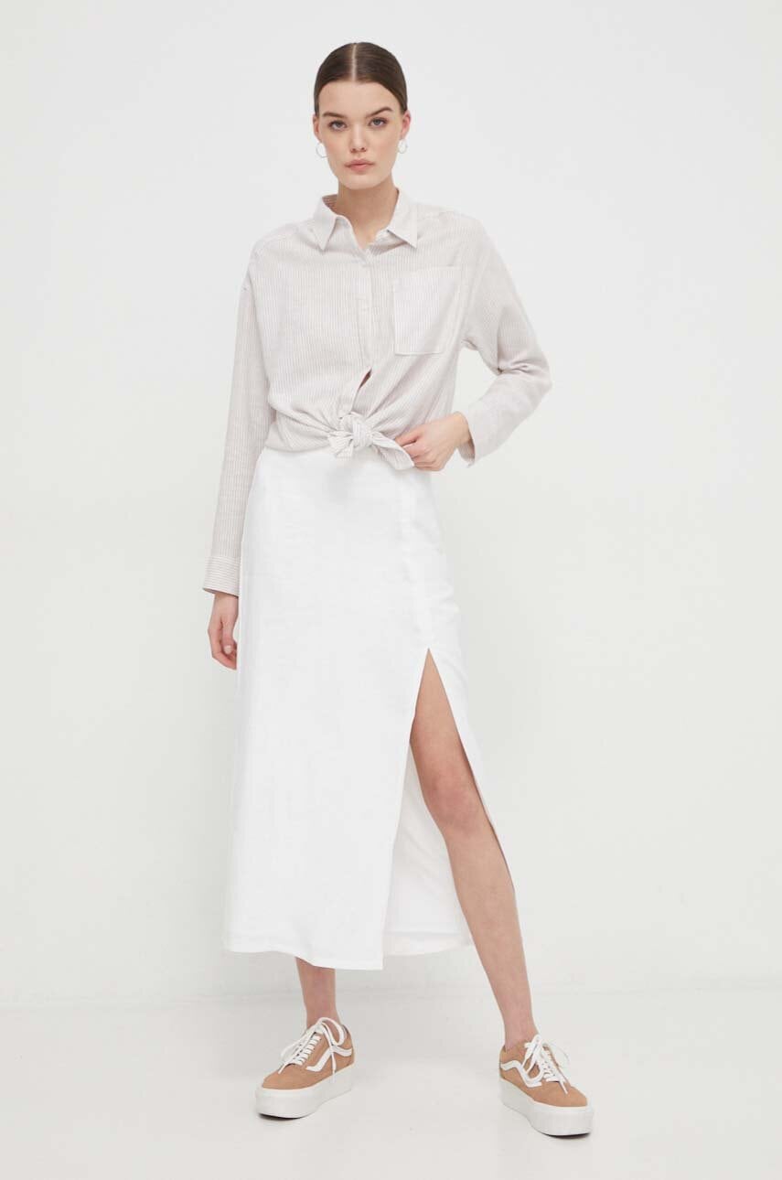 Hollister Co. fusta din in culoarea bej, midi, evazati