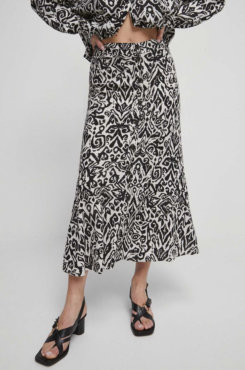 Medicine fustă din amestec de in culoarea bej, midi, evazati