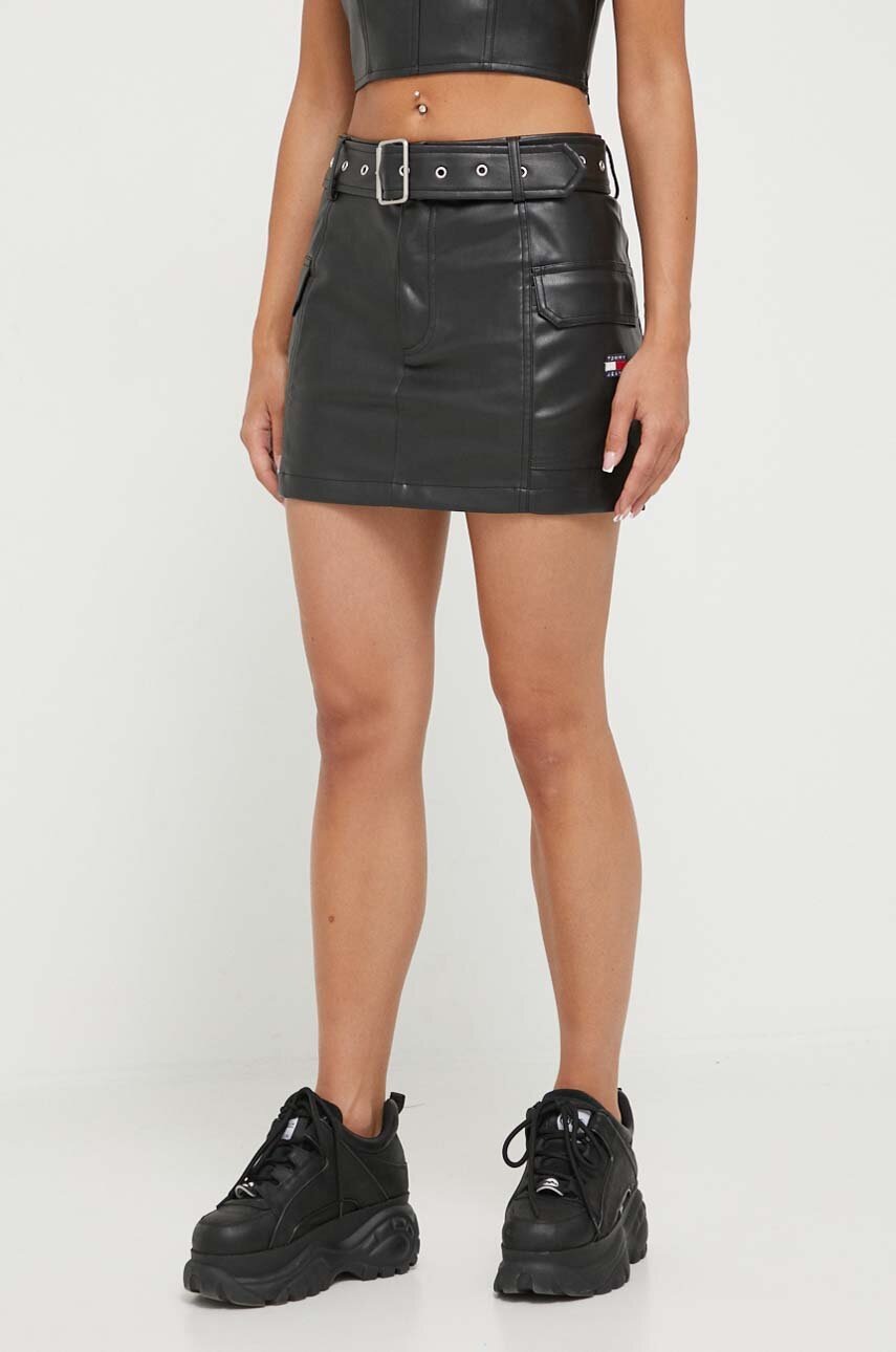 Tommy Jeans fusta culoarea negru, mini, drept