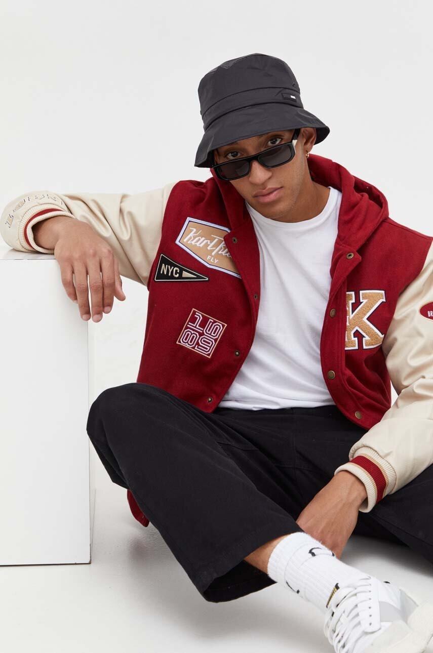 Karl Kani jacheta bomber din amestec de lana culoarea rosu, de tranzitie