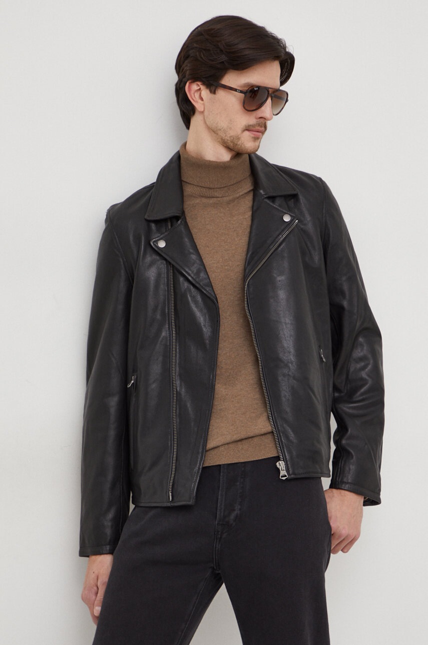Pepe Jeans geaca de piele Valen barbati, culoarea negru, de tranzitie