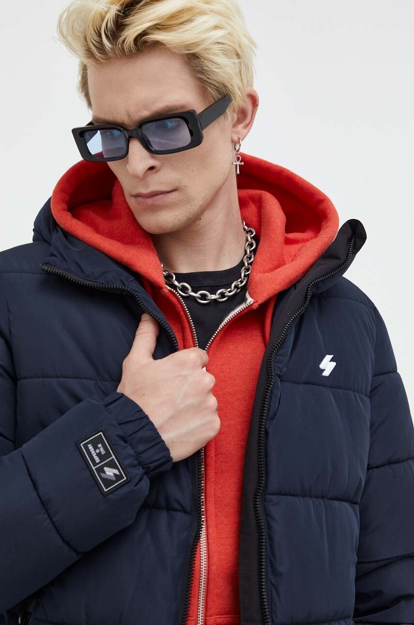 Superdry geaca barbati, culoarea albastru marin, de iarna