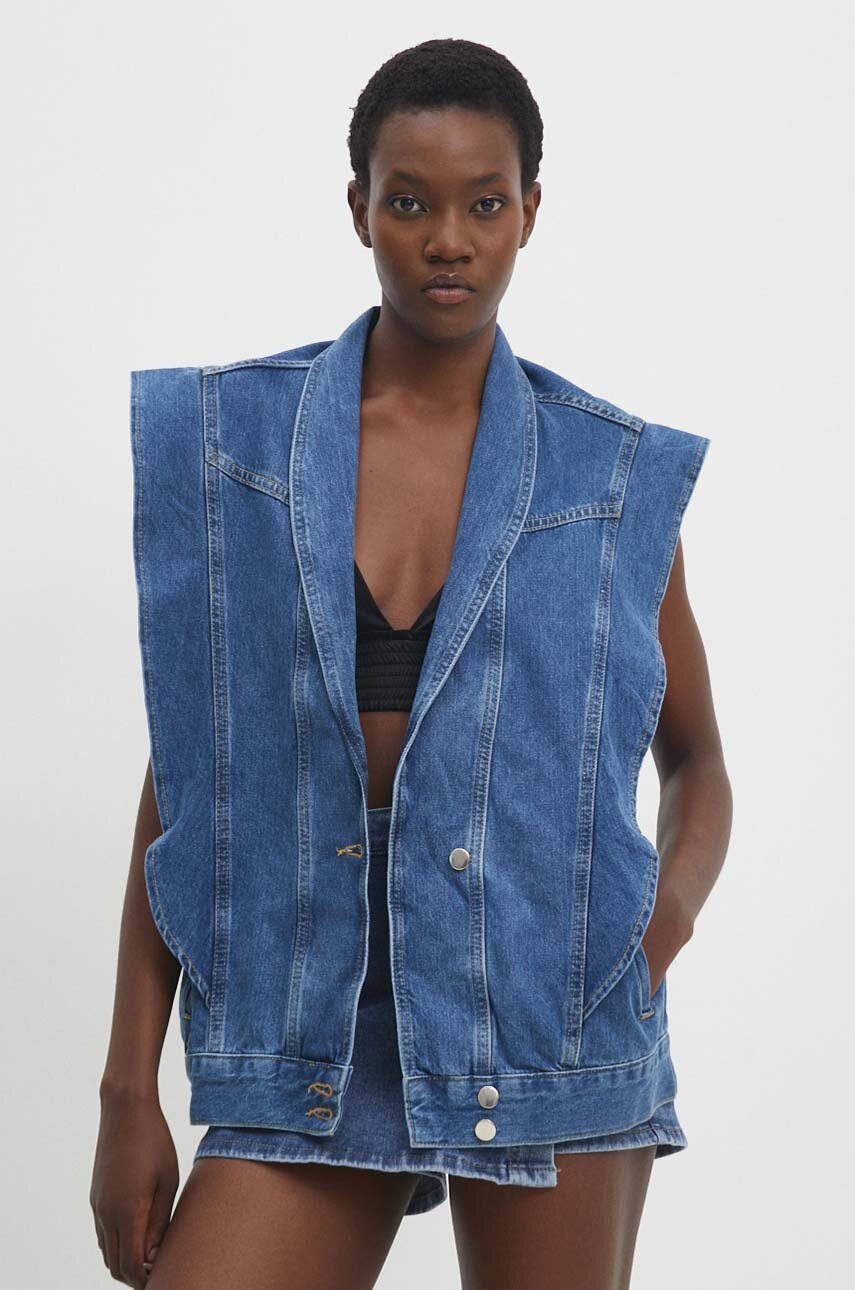 Vesta din colecția Answear Lab. Model neizolat confecționat din din denim. Modelul este realizat dintr-un material rigid, care păstrează forma.