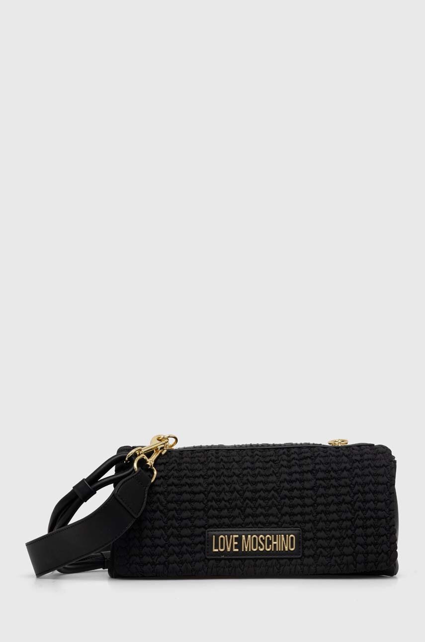 Poseta mica din colectia Love Moschino. Model cu fixare confectionat din combinatia materialului textil cu pielea ecologica.
