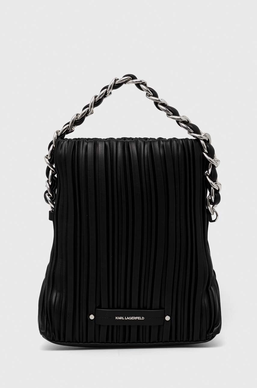 Poseta de marime medie din colectia Karl Lagerfeld. Model cu fixare confectionat din piele ecologica.